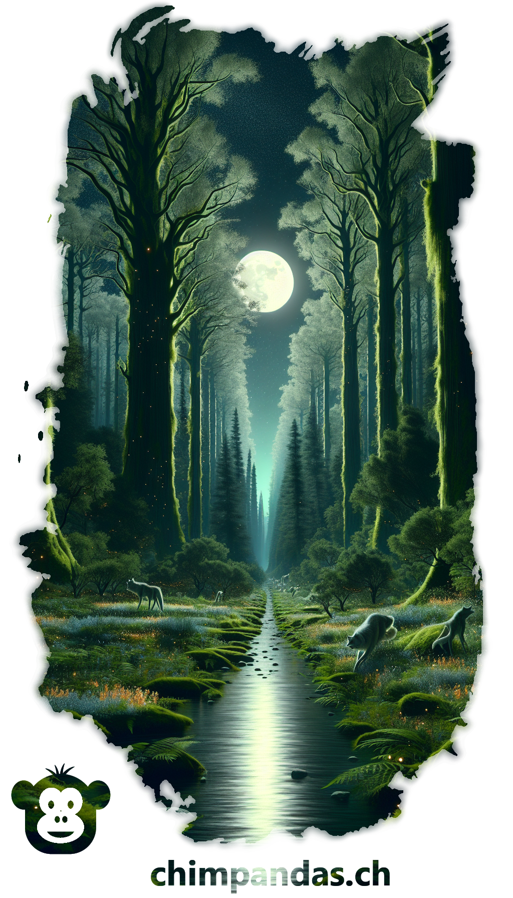 Title: Enchanted Forest Description: Imagine a serene and mystical forest bathed in the soft light of a full moon. Towering ancient trees with moss-covered branches stretch towards the sky, creating a natural cathedral of greenery. A thick carpet of vibrant, emerald-green ferns covers the forest floor, muffling any sound and adding to the ethereal atmosphere. Small, delicate wildflowers dot the landscape, their colorful petals shimmering in the moonlight. As you walk deeper into the forest, you come across a shimmering, crystal-clear stream that weaves its way through the trees like a ribbon of liquid silver. The gentle sound of the water babbling over smooth stones is soothing to the ears, adding to the enchanting ambiance of the night. The air is filled with the sweet scent of wildflowers and pine, mingling to create an intoxicating perfume that invigorates the senses. Fireflies dance in the darkness, their soft, golden glow adding a magical touch to the scene. Above, the sky is a canvas of twinkling stars, their brilliance mirrored in the still waters of the stream. In the distance, you catch a glimpse of a majestic creature moving gracefully through the trees. A sleek, silver wolf with eyes that seem to hold ancient wisdom watches you with curiosity, its presence adding a sense of mystery and wonder to the already enchanting forest. With every step you take, you feel a sense of peace and awe wash over you, as if you have stumbled upon a hidden realm untouched by time. The Enchanted Forest beckons you to explore its secrets and lose yourself in its beauty.