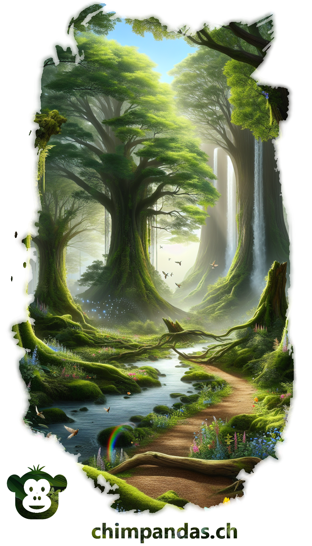 Title: Enchanted Forest Description: Imagine a breathtaking landscape nestled deep within an ancient forest. The image transports you to a serene and magical realm where lush greenery envelops towering trees, creating a haven of tranquility and wonder. Sunlight delicately filters through the dense canopy, casting ethereal beams of light onto the forest floor, illuminating a path strewn with vibrant wildflowers. As you explore further, you notice a gentle mist swirling around the tree trunks, adding an air of mystery to the scene. The air is filled with the sweet fragrance of blooming flowers and the earthy scent of damp moss, awakening your senses and inviting you to immerse yourself fully in the beauty of nature. Birds chirp melodiously in the distance, their songs blending harmoniously with the rustling of leaves in the gentle breeze. A crystal-clear stream meanders through the forest, its waters sparkling like liquid diamonds as they cascade over smooth stones and create a soothing melody. As you gaze around, you spot delicate fairy wings fluttering amidst the foliage, hinting at the presence of magical creatures who call this enchanting forest home. The vibrant hues of their iridescent wings shimmer in the dappled sunlight, captivating your imagination and igniting a sense of childlike wonder. In the distance, a majestic waterfall tumbles gracefully from a moss-covered cliff, its waters glistening as they plunge into a pool below. Rainbows dance in the misty spray, creating a mesmerizing spectacle that fills you with a sense of awe and reverence for the natural world. The Enchanted Forest beckons you to explore its hidden wonders, inviting you to lose yourself in its timeless beauty and find solace in the harmonious symphony of sights and sounds that surround you. This image is a testament to the captivating power of nature and the boundless magic that awaits those who dare to venture into its depths.