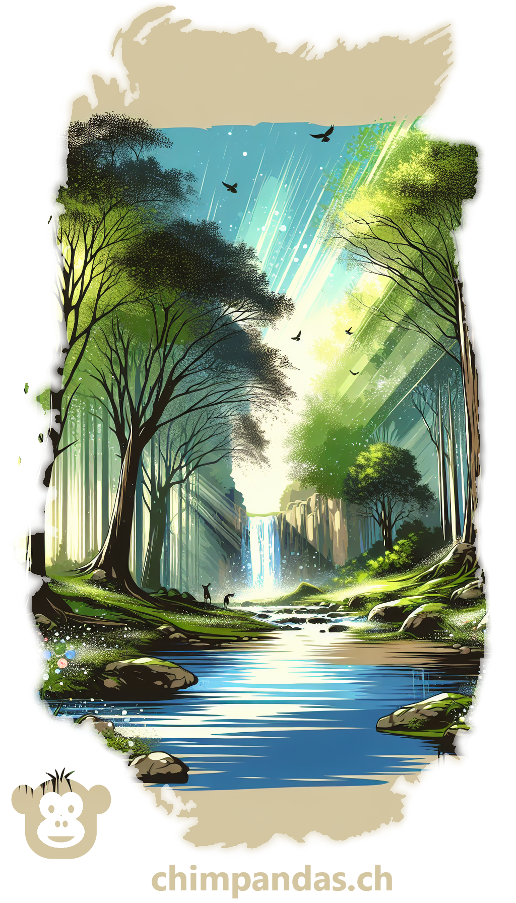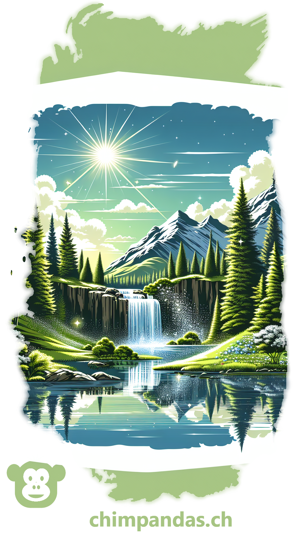 Title: Serenity in Nature Description: Imagine a serene landscape nestled within a lush forest, painted in vibrant hues of green and gold. In the center of this image, an elegant waterfall cascades gracefully from a rocky cliff, its waters sparkling in the warm sunlight. The air is filled with the soothing sounds of rushing water and bird songs, creating a peaceful atmosphere that envelops the entire scene. Surrounding the waterfall, towering trees reach towards the sky, their branches swaying gently in the soft breeze. Sunlight filters through the canopy, creating dappled patterns of light and shadow on the forest floor. Wildflowers of various colors dot the landscape, adding splashes of brightness to the rich tapestry of greenery. In the distance, majestic mountains loom on the horizon, their peaks crowned with snow that glitters in the sunlight. A meandering river winds its way through the valley, its waters reflecting the beauty of the surrounding landscape like a natural mirror. The sky above is a brilliant shade of blue, adorned with fluffy white clouds that drift lazily overhead. As you take in this breathtaking scene, you feel a sense of peace and tranquility wash over you, the stresses of the outside world melting away in the beauty of nature. The peaceful energy of the forest and the soothing sounds of water create a harmonious symphony for the senses, inviting you to pause, breathe deeply, and appreciate the wonders of the natural world. Gaze upon this image and let yourself be transported to a place of serenity and beauty, where the soul can find rest and rejuvenation amidst the tranquil embrace of nature.