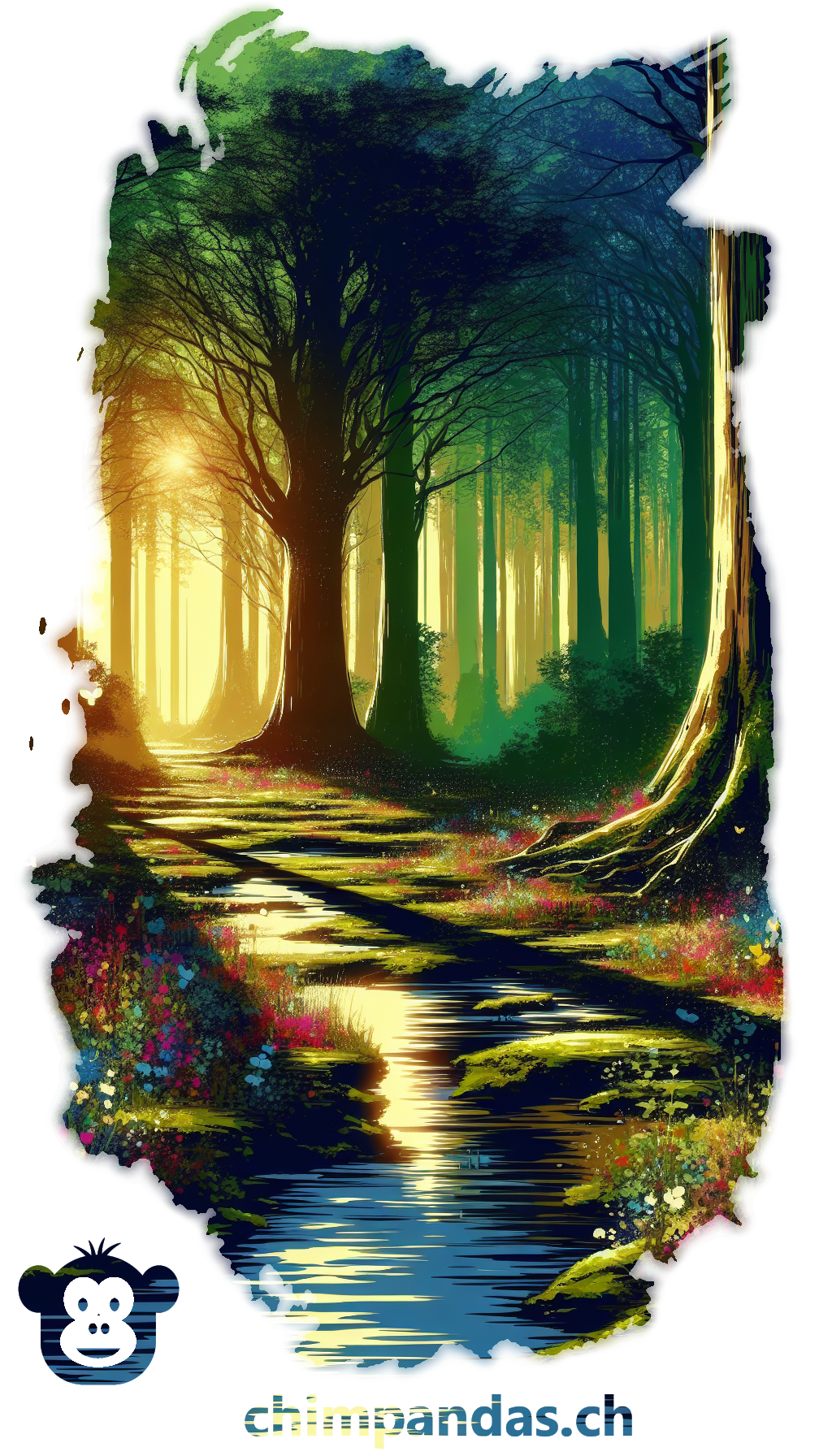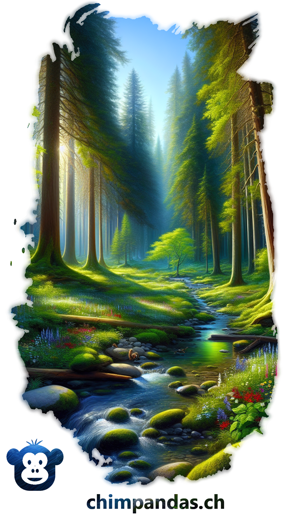 Title: Tranquil Forest Glade Description: Imagine yourself stepping into a serene forest glade, surrounded by tall, majestic trees reaching up towards the clear, blue sky. Sunlight filters through the leaves, creating a dappled pattern on the forest floor. The air is fresh and cool, carrying the scent of pine and earth. In the center of the glade, a small crystal-clear stream meanders its way through smooth river rocks, its gentle babbling adding to the peaceful ambiance. Along the banks of the stream, colorful wildflowers bloom in abundance, their vibrant hues standing out against the lush greenery. Birds flit among the branches, their melodic songs filling the air with music. Squirrels scamper playfully up and down the tree trunks, while butterflies dance on the soft breeze. In the distance, the forest stretches out in all directions, a symphony of greenery and life. A sense of tranquility envelops you in this secluded oasis, offering a moment of respite and connection with the natural world. As you stand in this tranquil forest glade, you can feel the stresses of the outside world melt away, replaced by a deep sense of peace and harmony with nature. Take a moment to breathe in the beauty and serenity of this magical place, allowing its calming energy to rejuvenate your spirit.